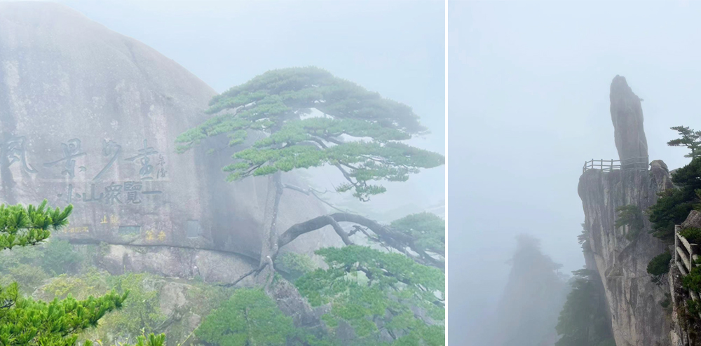 大家早早起床開始準(zhǔn)備,坐上光顧巴士,來到了黃山南門入口。坐上上山的索道,一路的美景盡收眼底,半山腰的煙霧仿佛讓我們感覺身處于仙境。下了索道后,我們開始向一個一個景點攀登,途徑光明頂、飛來石、迎客松和蓮花峰等。